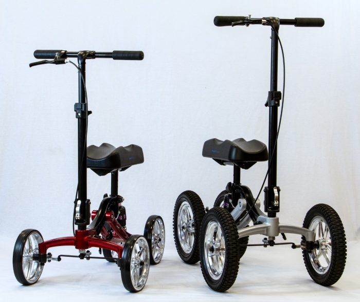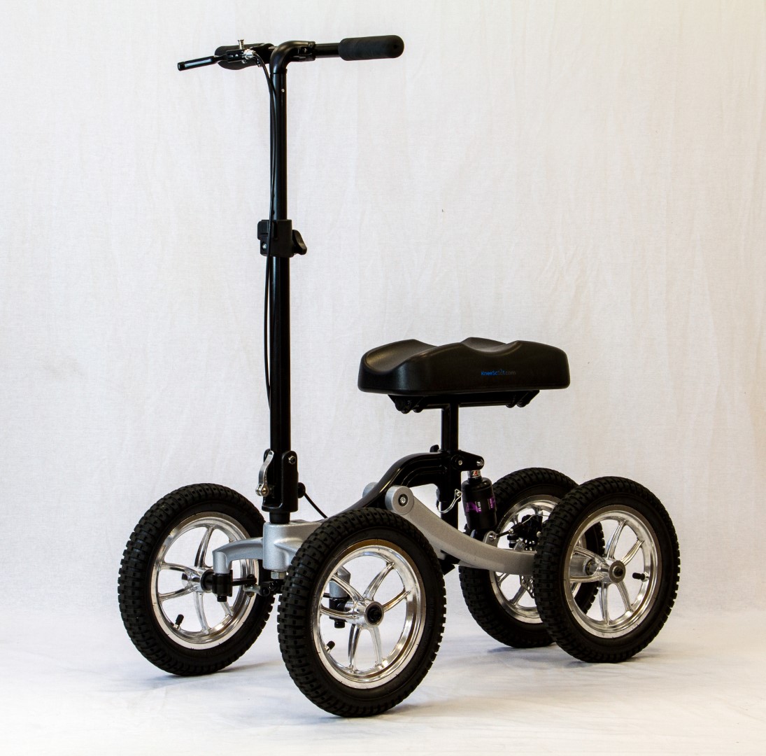 If you’re outside a lot or like to keep very active during your recovery, then the KneeScoot Quad 4 All Terrain is built to handle all types of rougher terrain and works great indoors too!